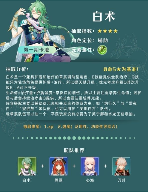 白术凭借持续治疗与元素反应辅助能力,在激化队伍与绽放体系中均有亮眼表现。其元素爆发提供的护盾兼具抗打断与元素附着功能,特别适合需要站场输出的作战环境。虽然优先级略低于版本核心角色,但对于追求队伍多样化的玩家仍是值得投资的战略型角色。