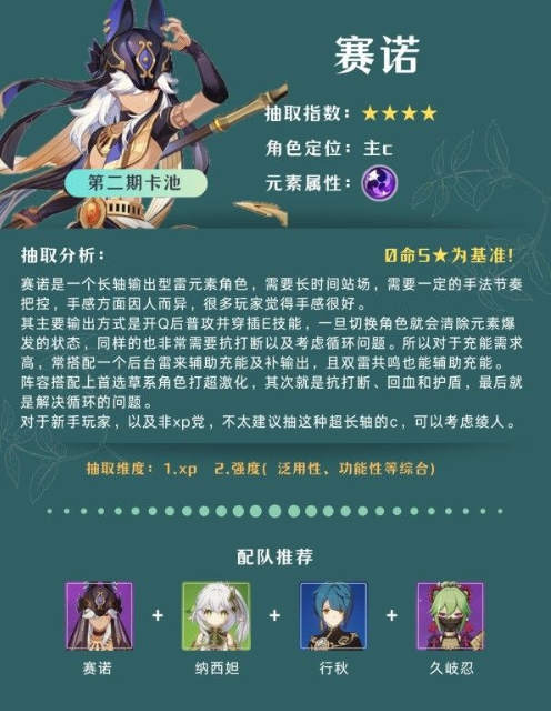 赛诺在现有环境下面临输出模式与阵容适配的双重考验。尽管新版本为其提供了更多水元素队友选择,但长轴输出特性与当前速切环境仍存在兼容性问题。建议新玩家优先考虑版本强势主C,老玩家可视现有box深度酌情补强。