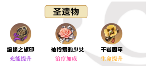 主属性:时计(元素充能/生命值百分比)|空之杯(生命值百分比)|理之冠(治疗加成/生命值百分比)