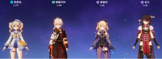 芭芭拉+枫原万叶+菲谢尔+北斗构筑元素反应链,利用治疗角色的驻场能力维持团队输出节奏。