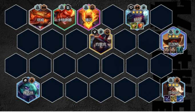 1、核心成员配置:塔姆+卡特琳娜+锤石+瑟提+厄加特(需获取舞者天选)+莎弥拉+薇古丝+掘墓者